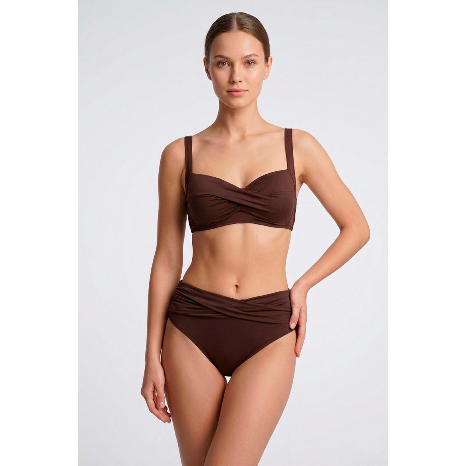 Жіночий роздільний купальник на тонкому поролоні, схожий на бікіні. Регульовані, незнімні бретелі. Трусики-сліпи з високою талією.