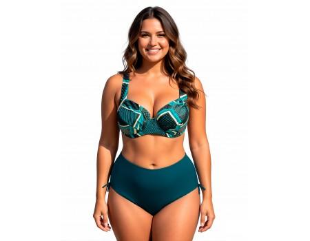 Жіночий роздільний купальник на тонкому поролоні, схожий на бікіні. Регульовані, незнімні бретелі. Трусики-максі з високою талією та шнурками з боків.